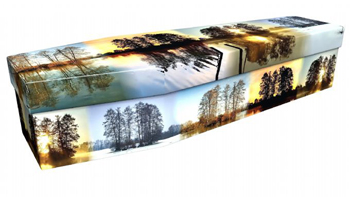 The Pictorial Coffin range has images printed over all 4 sides and the lid, and appeals to people's differing interests, and there is also the option of having your own bespoke design made up with your own photos.